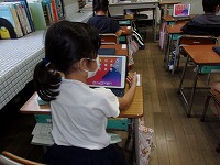 5月20日(木)、1年生でタブレットを使った授業が行われました。お家で使ったことがあるという児童もいるようですが、学校で始めて使うタブレットにみんな興味津々です。今日の学習では、カメラを起動して写真を撮ったり、自分で撮った写真を見たりしました。教師の説明をしっかりと聞いて、楽しく学習をしていました。