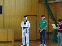 今回の教室には講師として、テコンドー選手の栗山大選手と三山木鍼灸整骨院の島村元達先生にお越しいただきました。
