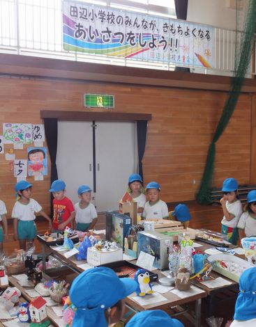 今年の夏休み作品展は、田辺幼稚園の園児の作品も展示しました。