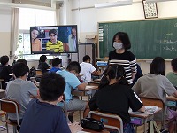 6月8日(月)、6年生の外国語の授業が始まりました。6年生の外国語には、田辺中学校より下川先生にもお越しいただき、授業を行っています。子どもたちは、自分の名前の書き方を学び、早速教科書に英語で自分の名前を書いていました。