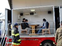 校長先生、消防署の方のお話を聞いた後、6年生の児童は地震の揺れを体験することの出来る「起震車」の体験をしました。