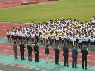去る10月25日(火)に京田辺市9小学校の6年生が一堂に山城総合運動公園(太陽が丘)に集まり、陸上交歓記録会が行われました。日頃の体育学習の成果を発揮して、自己の記録に挑戦し、また市内の同じ6年生同士の交流を深めることができました。