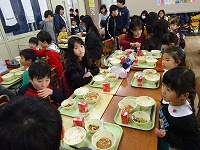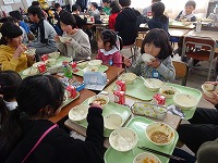 3年生との交流の後、園児のみなさんは5年生と給食を食べました。