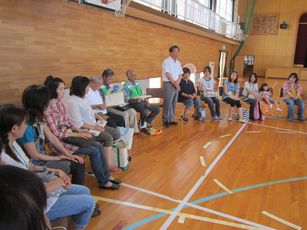 朝から体育館で「児童の安全に係る懇談会」を開催しました。