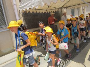 外に出て一斉下校をしました。