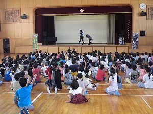 10月11日(火)に田辺小学校に地球と安全を守るヒーローが登場する防犯教室を行いました。対象学年は、1・2年生で子どもたちは、地球戦士ゼロスのヒーローショーを楽しみながら不審者への対応など防犯意識を高めることができました。