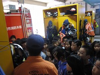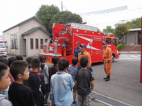 「消防車の種類がこんなに多くてびっくりした。」「働いている人は人の命を救うために、いろんな工夫をしているんだ。」など、見学を通して消防署や消防隊員の仕事の奥の深さを学ぶことができました。また、「将来消防士になりたい」という子どもの声も聞こえてきました。今日の見学を学習のまとめにいかしてほしいです。