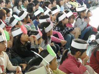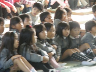 「たなべっ子発表会」 幼稚園園児、小学校児童が、お互いの発表を聞きました。園児にとっては、4月から通う小学校での初めての発表「わぁ 小学校に行ったら、こんなに多くのお姉さん、お兄さんがいるんだ。」「きんちょうするなあ」児童にとっては、「来年になったら、いろんなこと教えてあげよう」「そうだ、ぼくもこの幼稚園の歌歌ってたなあ」 4月から田辺小学校の子どもになる園児にとって、小学校への第一歩4月から小学生になる園児を迎えた小学生にとっても進級への第一歩となりました。