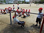 1年生は、体育授業で「鉄棒」運動に取り組んでいます。