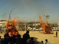 ふるさと体験学習の一環として、昔から伝わる伝統行事、「とんど」が本校の運動場で行われました。