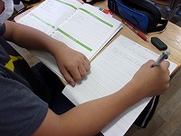 学校が再開し、1か月半が経過しました。再開当初は、新しいクラスに少し緊張気味だった子どもたちですが、落ち着いて学習に向かっています。担任や教科担当者は、授業をよりわかりやすくするために、ICTを活用した導入を行ったり、イラストを用いたりして授業を進めています。学んだことを振り返る時間では、ノートに貼った振り返り表を参考にしながら、振り返る子どもも多くみられます。