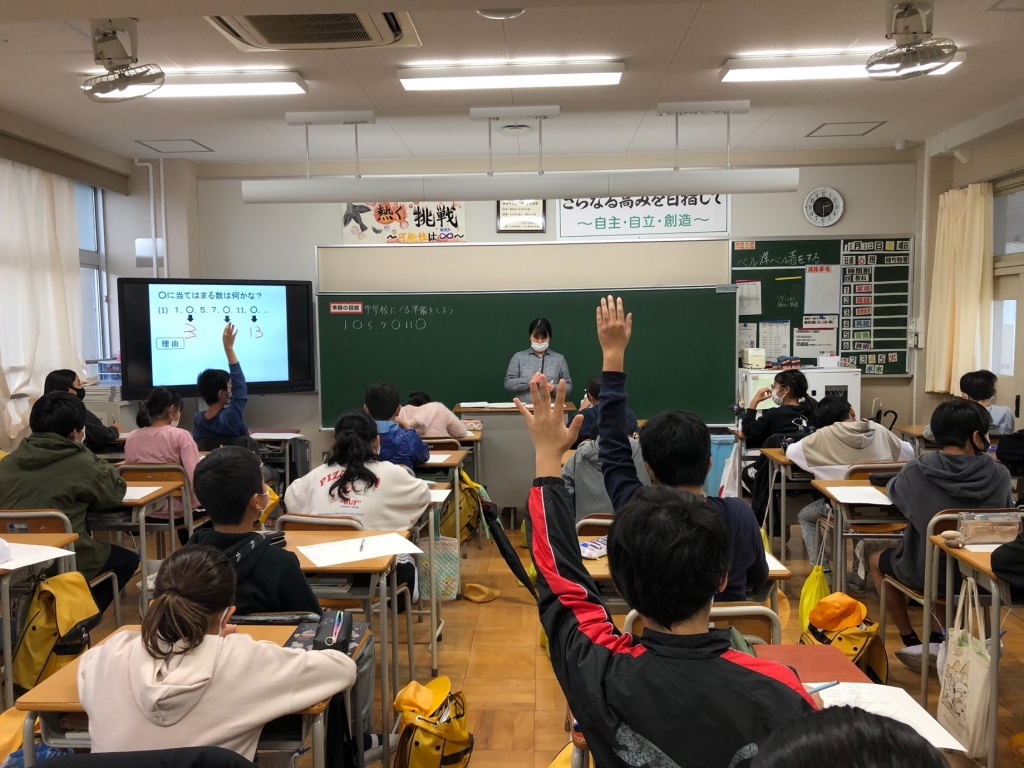 11月12日(金)、6年生は、田辺中学校に授業体験へ行きました。まず、校舎をまわりながら部活動見学を行いました。その後、中学校の先生方に授業を行って頂きました。1組は、英語科の学習で「am, is , areの使い分け」について学習しました。2組は、数学科の学習で「様々な数列の見方や考え方」について学習しました。3組は、国語科の学習で「グループワークを通して詩の魅力を発見する」学習を行いました。半年後の自分の姿に見通しを持てる、とても貴重な体験となりました。