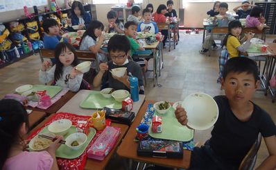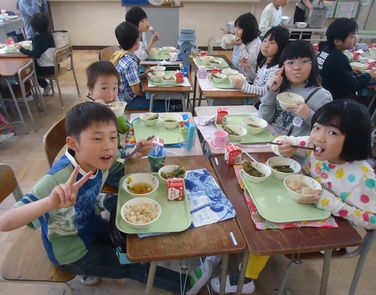 本日の給食は、地域の方にいただいたたけのこで作ったたけのこごはんでした。