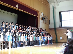 4年生までで学習した都道府県やむかし遊びを群読で発表しました。