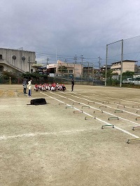 ハードルや手製のミニハードルを用いて、地面を蹴る力を最大限に発揮できるよう、足首・膝・股関節の動かし方を教えていただき練習しました。
