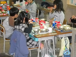 まず、12月生まれの児童や先生の紹介を放送で行います。教室では、牛乳で乾杯したり、「おめでとう」の声をかけあったり・・・