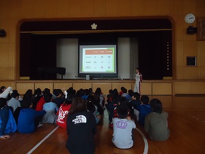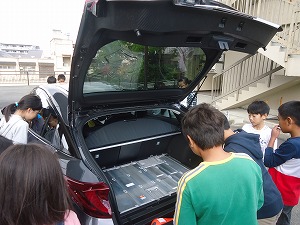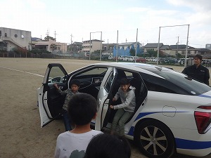 5年生の社会科で、5・6時間目を使って水素を使って走る車のしくみの学習及び乗車体験を行いました。