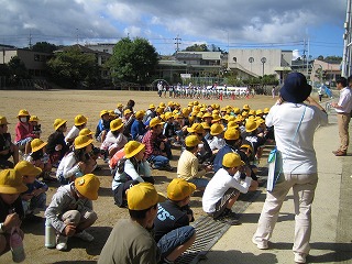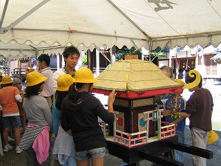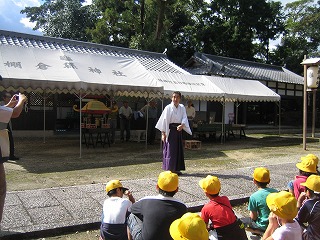 秋晴れの今日、3年生と4年生は棚倉孫神社のずいき御輿を見学に行きました。