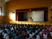 校長先生から先月の校外学習のみんなのがんばりについての話がありました。