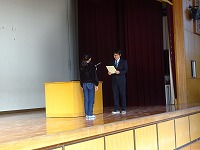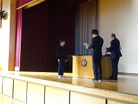 次に「京田辺市小・中学生英語スピーチコンテスト」の伝達表彰を行いました。