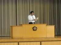 6月29日(火)の朝礼で、校長先生が子どもたちに「京の子ども明日へのとびら」を使って、話をしました。
