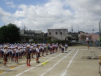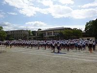 3校時は、運動会の開閉会式の隊形の確認やラジオ体操の練習、応援席への戻り方の練習を行いました。