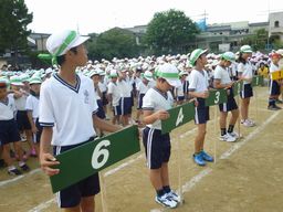 運動会の練習では、行進や入退場の仕方を練習しています。