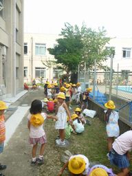 今日は4年生と6年生は、運動場の石拾いをしました。