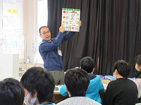 授業では、生活のどのような場面で電気を使っているのか、電機はどのようにして作られ、どこから来ているのかなどについてクイズを交えながら分かりやすく教えていただきました。