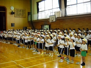 残暑が残る中での練習でしたが、指示する先生の話をしっかり聞いて、集団活動の楽しさとを大切さを学びました。