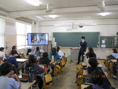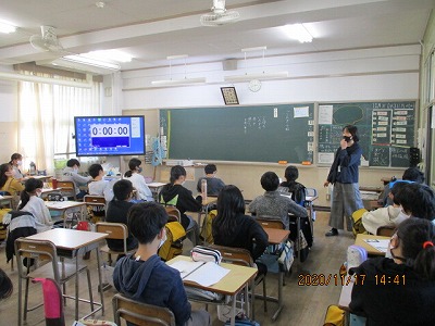 11月17日(火)5・6校時、6年生が各クラスで中学校の授業を体験しました。5校時は、中学校の様子や各部活動紹介のビデオを視聴し、6校時は田辺中学校の先生方に理科・国語・英語の体験授業を行っていただきました。