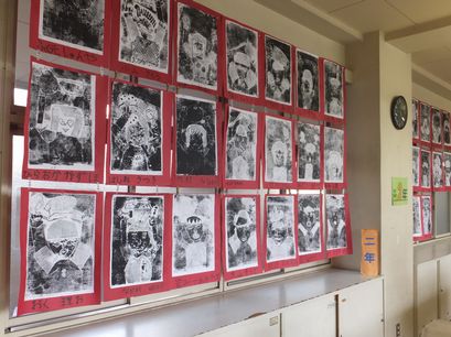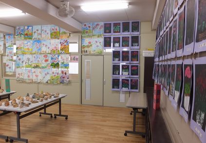 高学年はランチルーム(南校舎1階西側)で展示しています。