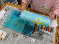 くすの木1組・3組は図画工作「マーブリングを楽しもう」の学習を行いました。