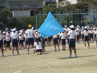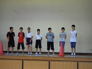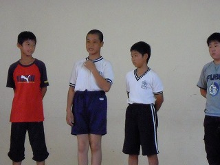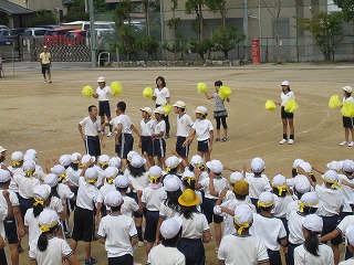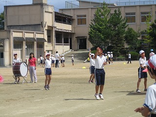 台風が去った今日、運動場で本番に向けて色事に練習をしました。