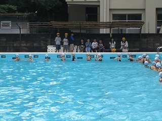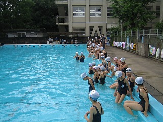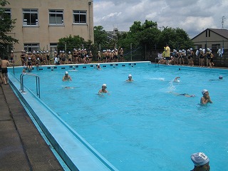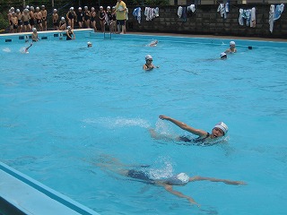 今日は自分の泳力に合わせて25㍍を泳ぎます。クロール、平泳ぎ、犬かき、バタ