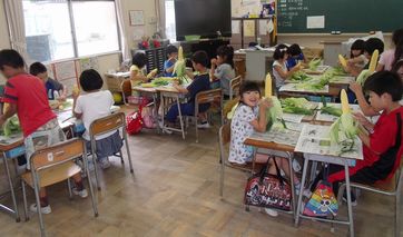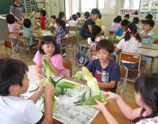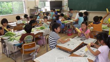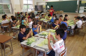 7月8日(水)の1校時に、3年生とくすの木学級の子どもたちが、給食で食べる