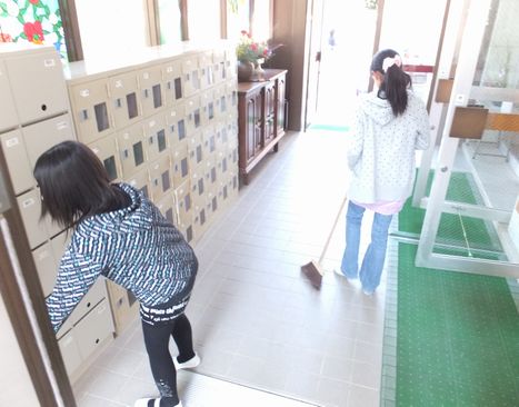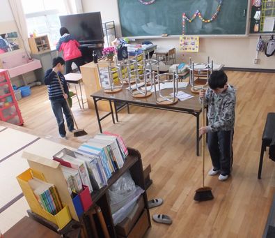 式後、大掃除をして1年間過ごした教室をきれいにしました。