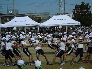 「4色による応援合戦」 (綱引き)午前中にも実施