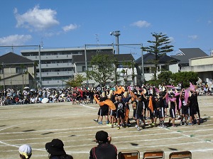 後半はじめの種目 児童会種目「合わせろ!ほほえみパワー」