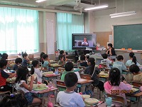 9月15日(火)、委員会の長が、前回の委員会で決まった目標や活動の報告をしました。例年、ほほえみ集会は体育館で行っていますが、今年度は新型コロナウイルス感染症拡大防止のため、ZOOMを利用して行いました。委員長は会議室から配信を行い、全校の児童は、自分の学級のモニターを通して話を聞いていました。初めての試みでしたが、委員長になった子どもたちは、練習の甲斐もあり、しっかりと顔をあげ、わかりやすく発表できていました。