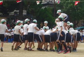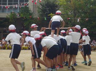 土台になった子どもたちは、上の子が走りやすいように工夫し、