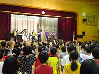 「シング シング シング」や「聖者の行進」など様々な楽曲を演奏だけでなく、本校の校歌をアレンジしての演奏や、子どもたちとのリズム遊びをしていただき、とても楽しい時間を提供してくださいました。