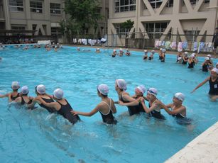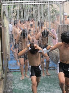 プールは、6年生の歓声に包まれました。