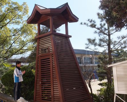 済美の鐘の音を聞いて黙祷しました。