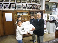 12月3日(火)校長室で、ふきん・雑巾の贈呈式が行われ京田辺市老人クラブ連合会からふきん100枚、雑巾100枚をいただきました。京田辺市老人クラブの皆さんありがとうございました。
