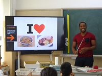 今日の授業ではシェボーン先生に自己紹介をしていただきました。子どもたちもシェボーン先生の話を熱心に聞きながら、先生との英語でのやり取りを楽しむことができました。