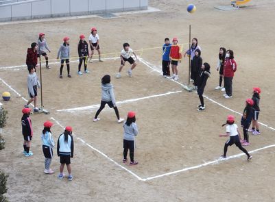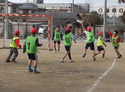 冷たい北風にも負けず、外で練習や試合をして楽しみました。