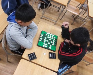 屋内で活動するクラブも、上級生がリーダーになって活動していました。