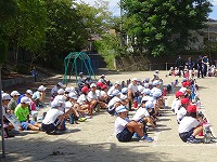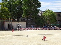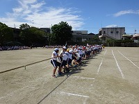9月12日(木)の3校時、運動会の児童会種目「合わせろ!ほほえみパワー(綱引き)」の全校練習を行いました。