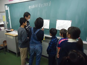 各ポイントでは、クイズやゲームのチャレンジに成功するごとに文字を1つ手に入れることができます。集めた文字を並び替えると問題ができあがり、その答えをみんなで考えました。